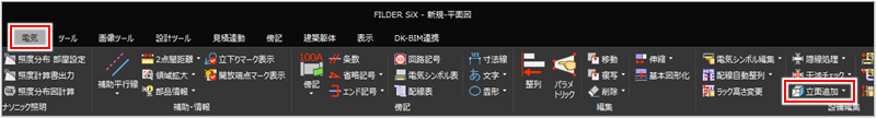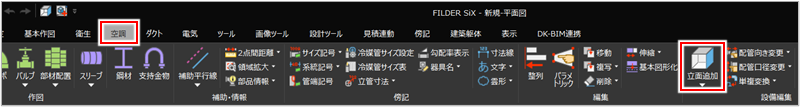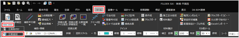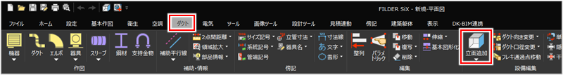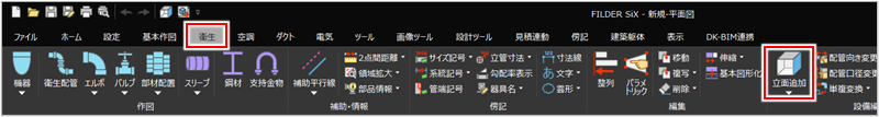 [衛生]タブ>[立面追加] [空調]タブ>[立面追加] [ダクト]タブ>[立面追加] [電気]タブ>[立面追加] [ツール]タブ>[立面貼付け]プルダウンメニュー>[立面追加] |