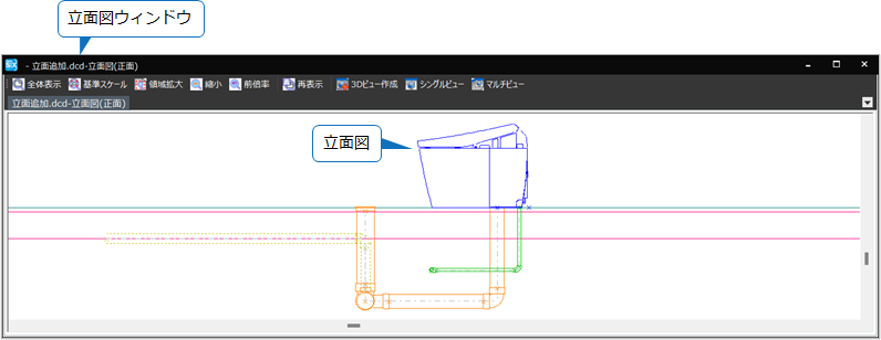 ここでは、例として正面の立面図ウィンドウを表示します。