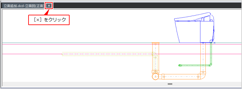 立面図ウィンドウの名称タブの[×](閉じる)をクリックすると、立面図ウィンドウが閉じます。