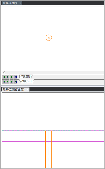 立面図ウィンドウから図面を作図・編集します。平面図と立面図は連動しているため、立面図ウィンドウで行った作図・編集は、平面図ウィンドウに即時反映されます。