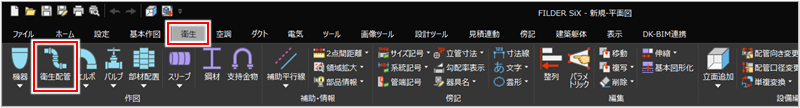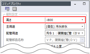 ここでは、例として立管の途中(高さ「-800」)から衛生配管を作図します。