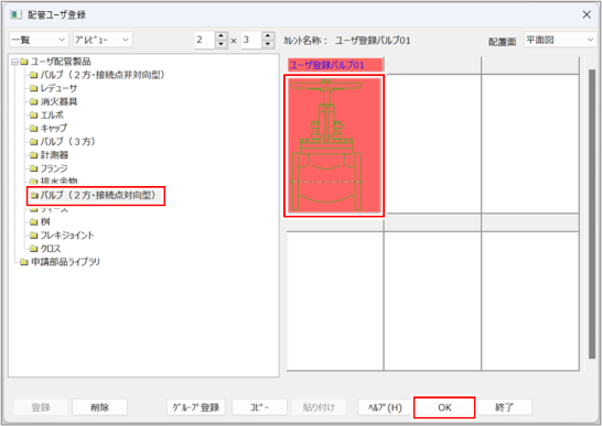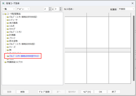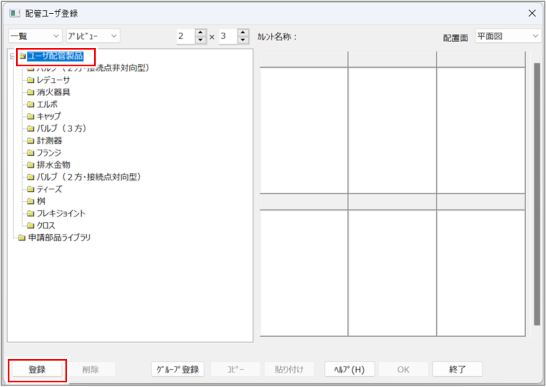 [ユーザー配管製品]をクリックし、[登録]ボタンをクリックします。