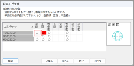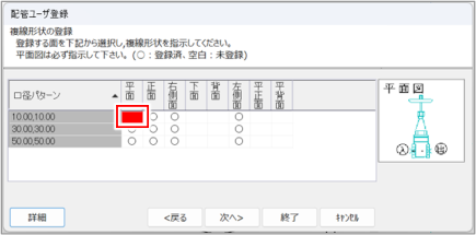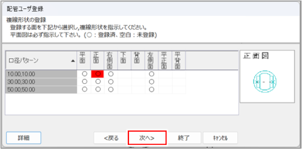 [配管ユーザー登録]ダイアログ(口径の登録)が表示されます。