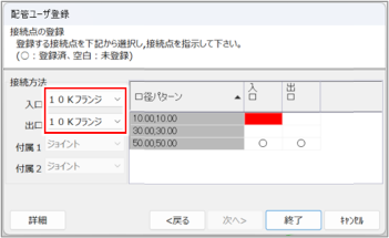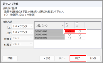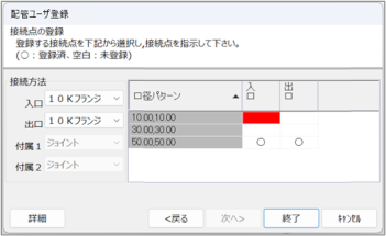 [配管ユーザー登録]ダイアログ(接続点の登録)が表示されます。
