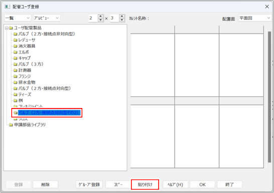 ユーザー登録した配管部品のフォルダを変更する(コピー・貼り付け)