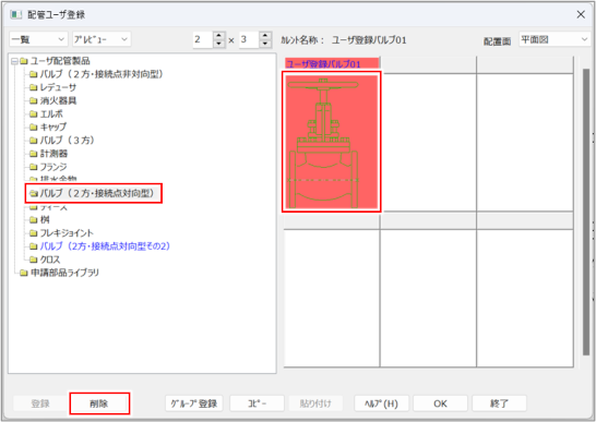 ユーザー登録した配管部品を削除する