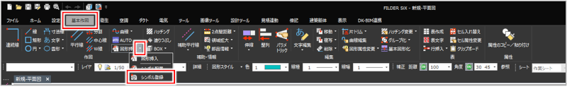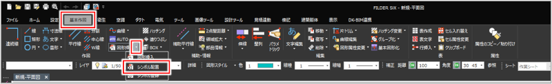 [基本作図]タブの[図形挿入]プルダウンメニューから[シンボル配置]コマンド(