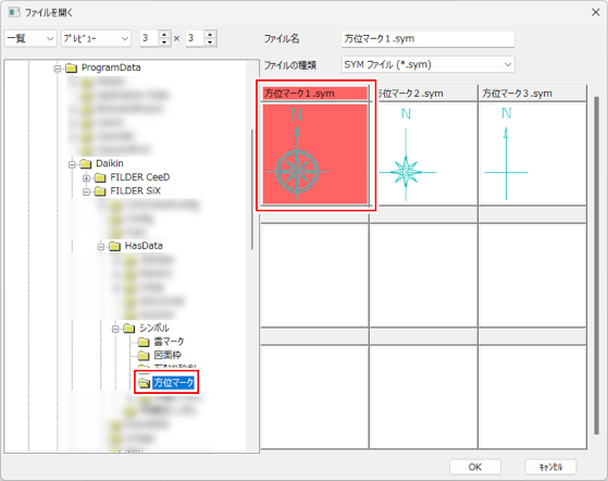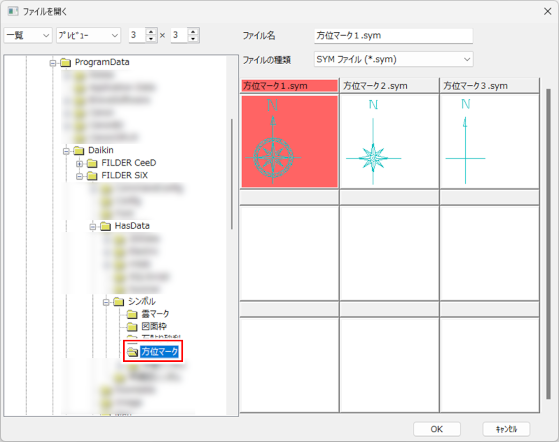 FILDER SiXの図形ファイルは、「C:\ProgramData\Daikin\FILDER SiX\HasData\シンボル」フォルダに保存されています。