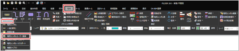 [電気]タブの[電気シンボル]プルダウンメニューから[電気シンボルユーザー登録]コマンド(