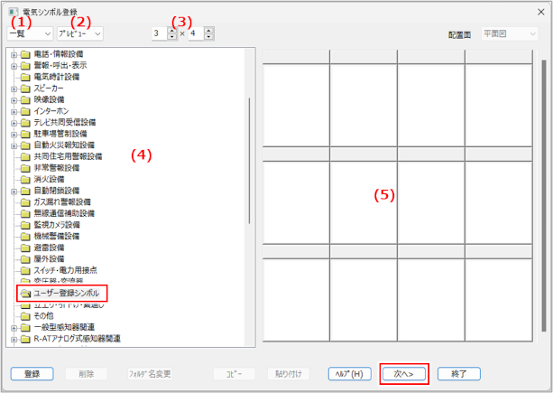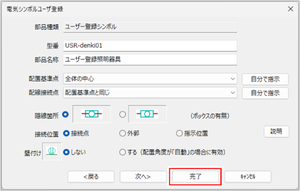 次の電気シンボルを登録する場合は[次へ]ボタンをクリックします。