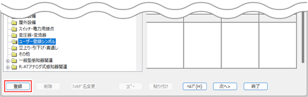 登録するフォルダを選択し、電気シンボルの設定を行います。詳しくは、以下の手順を参照してください。 |