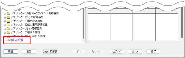 電気シンボルを登録できるフォルダが一覧で表示されます。 |