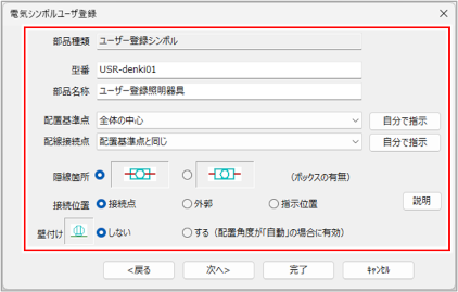 [電気シンボルユーザー登録]ダイアログが表示されます。