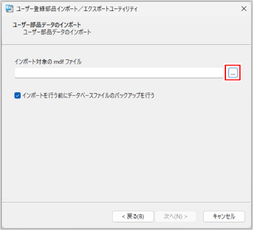 [ユーザー登録部品インポート/エクスポートユーティリティ]ダイアログ(ユーザー部品データのインポート)が表示されます。