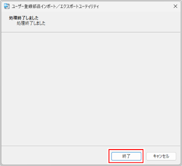 データがインポートされた後、[ユーザー登録部品インポート/エクスポートユーティリティ]ダイアログ(処理終了しました)が表示されます。