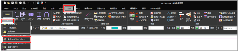 [電気]タブの[電気シンボル]プルダウンメニューから[電気シンボル・インポート]コマンド(