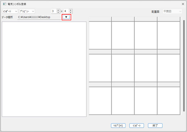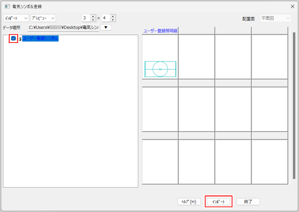 インポートする電気シンボルが含まれるフォルダにチェックを付けて[インポート]ボタンをクリックします。