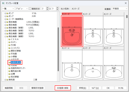 3Dデータを登録する機器データを選択し、[3D登録・削除]ボタンをクリックします。