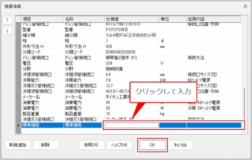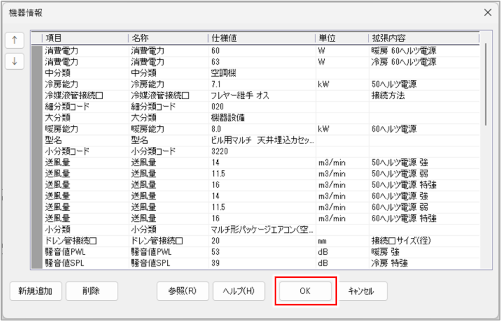 [OK]ボタンをクリックすると、選択中の機器の[機器情報]が上書きされるのでご注意ください。 |
