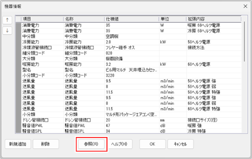 他の図形の機器情報を参照して適用する場合にクリックします。 [参照]ボタンをクリックして他の機器を選択すると、選択した機器の情報が[機器情報]ダイアログに取り込まれます。 |