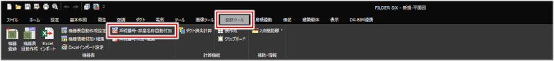 [設計ツール]タブの[系統番号・部屋名称自動付加]コマンド(