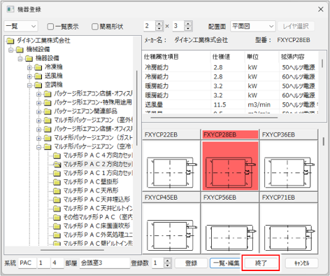 [登録一覧・編集]ダイアログが閉じ、選択した機器が表示されます。