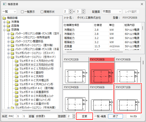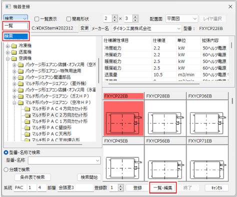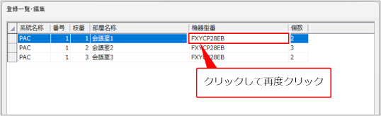 [登録一覧・編集]ダイアログが再表示され、選択した機器型番が表示されます。
