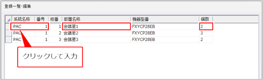 機器表への登録は[機器登録]コマンドを使用します。登録方法について、詳しくは以下を参照してください。