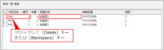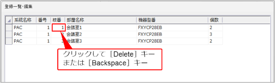 機器型番と個数は削除できません。個数を削除しようとすると「1」が自動入力されます。