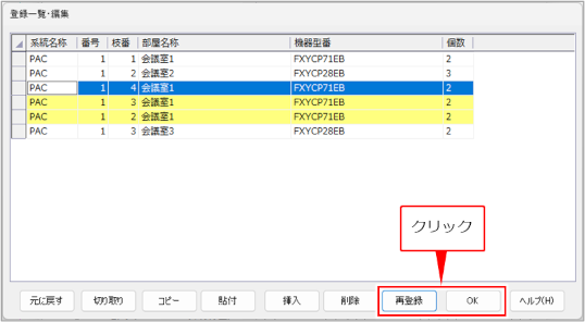編集が終了したら[OK]または[再登録]ボタンをクリックします。