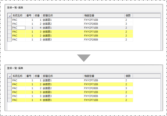 編集した内容は、再登録後に系統名称・番号・枝番を基準に昇順で並び替えられます。
