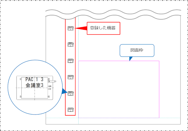 [機器登録]コマンドが終了し、図面枠外に登録した機器が配置されます。