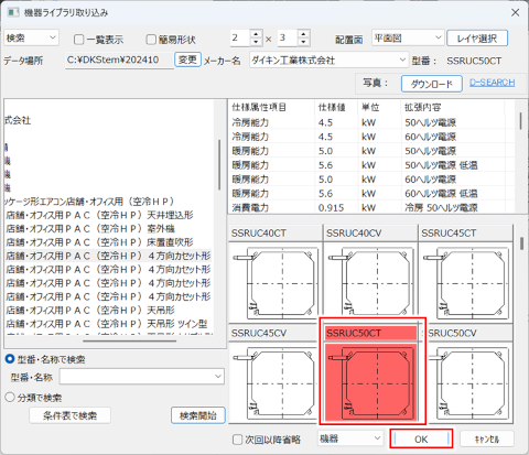 機器ライブラリから変更したい機器を選択肢、[OK]ボタンをクリックします。
