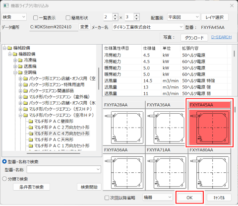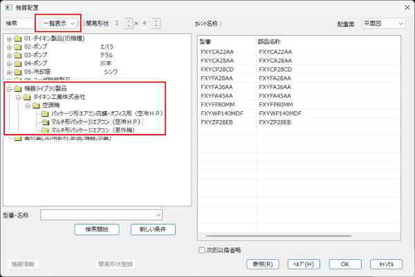 機器ライブラリから配置したい機器を選択し、[OK]ボタンをクリックします。