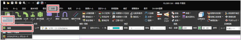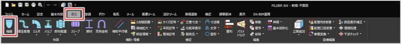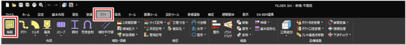 [衛生]タブ>[機器] [空調]タブ>[機器ライブラリ]プルダウンメニュー>[機器] [ダクト]タブ>[機器] |