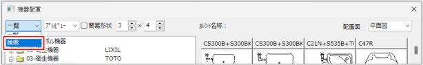 型番や名称で機器を検索する場合は、プルダウンメニューから[検索]を選択します。