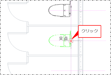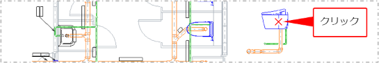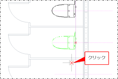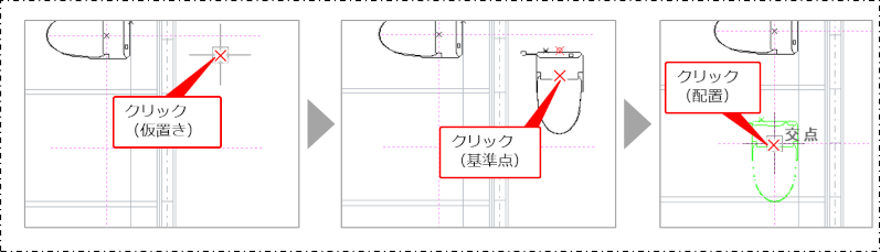 [機器配置]ダイアログで[原点を基準点とする]のチェックを外している場合は、図面の何もないところに機器を仮置きし、基準点を指定してから配置します。