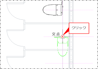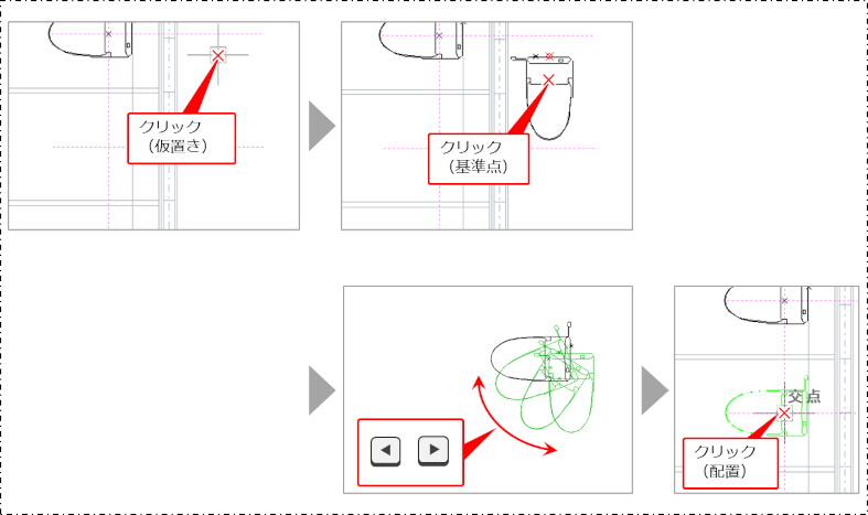機器の配置点(基準点)を中心に円を描くようにマウスを動かし、配置角度を設定します。
