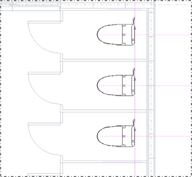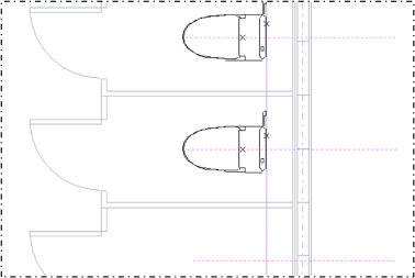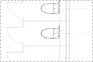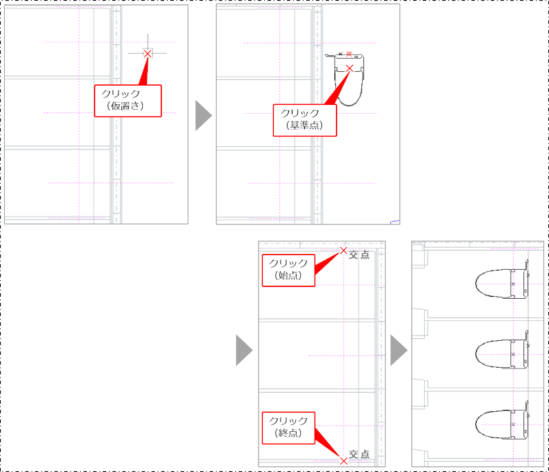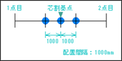 [芯割]:指定した芯割基準点から機器が配置され、[配置間隔]の設定値で残りの機器が左右均等に配置されます。