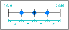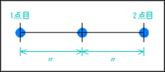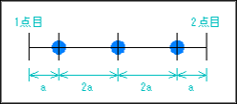 [1:2:‥2:1]:指定した範囲を[配置個数]の設定値で分割し、両端の分割距離と内側の分割距離の比が1:2となる位置に機器が配置されます。