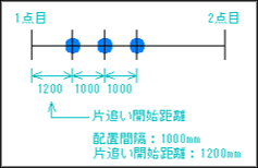 [複数配置方法]で[片追い]を選択した場合に、指定範囲の始点を基準に1個目の機器を配置するまでの距離を入力します。 |