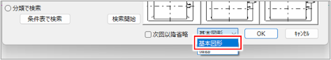 条件表から選択して機器を検索する場合にクリックします。 表の〇をクリックして条件を選択すると[分類で検索]に設定値が入力されます。 |