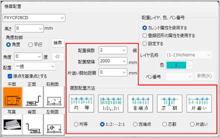 - [複数配置方法]で[1:2:‥2:1]を選択