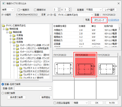 ダイキン製の機器の写真をダウンロード、または機器情報を検索します。