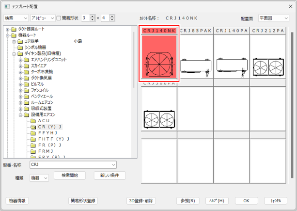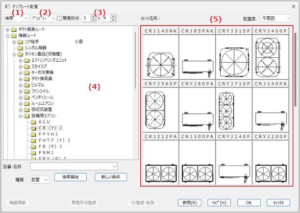 登録されている機器を呼び出して配置する(テンプレート配置)