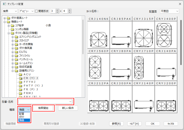 型番・名称・種類で機器を検索する場合型番・名称・種類で機器を検索する場合