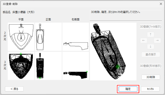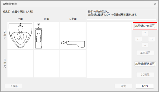 [3D登録・削除]ダイアログが表示されます。