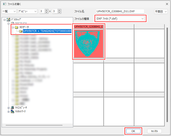 3Dデータを選択し、[OK]ボタンをクリックします。