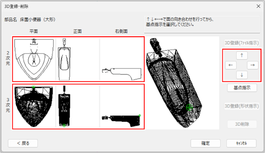 2次元の面と3次元の面が異なっている場合は、[↑][↓][←][→]ボタンをクリックして向きを合わせます。