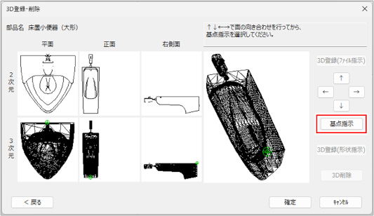 3次元図形の基点の位置が合っていない場合は、[基点指示]ボタンをクリックします。